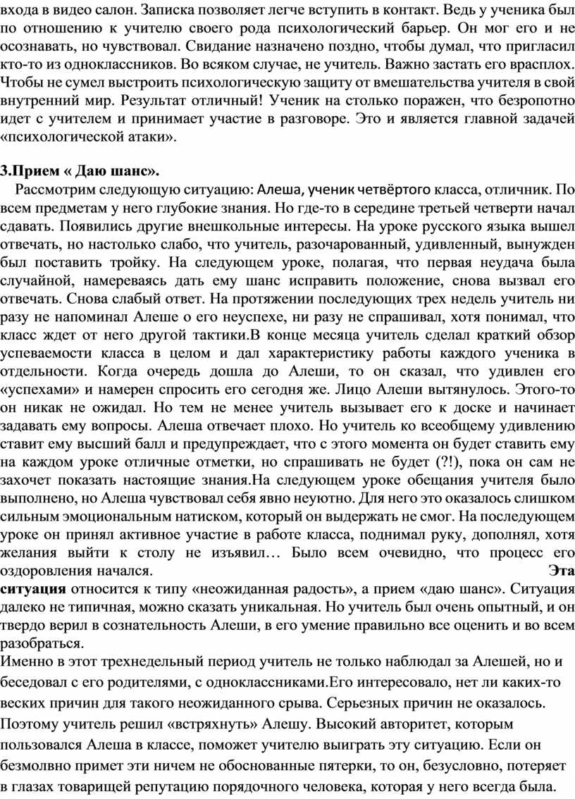 4. Прием «Даю шанс» (общая радость) - заранее подготовленная ситуация, в которой ученик неожиданно для себя может открыть свои возможности.
