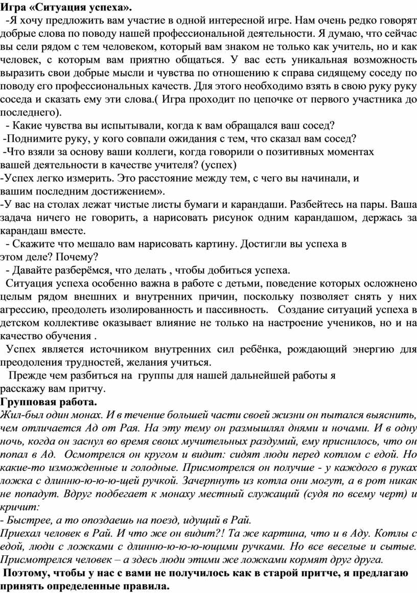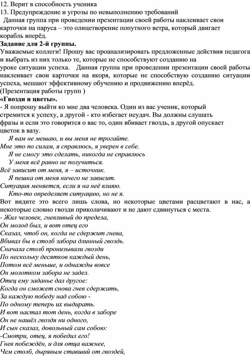 - Я, хочу предложить вам поговорить о том, как создать ситуацию успеха для учащихся.