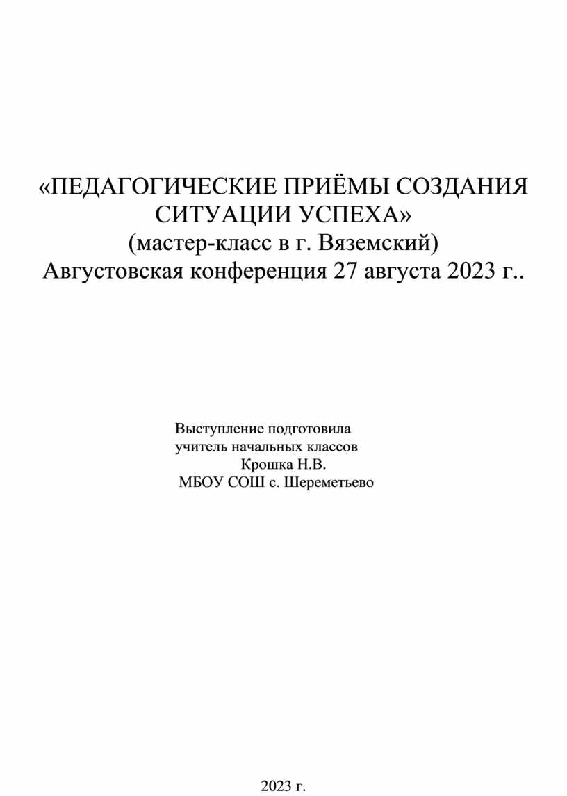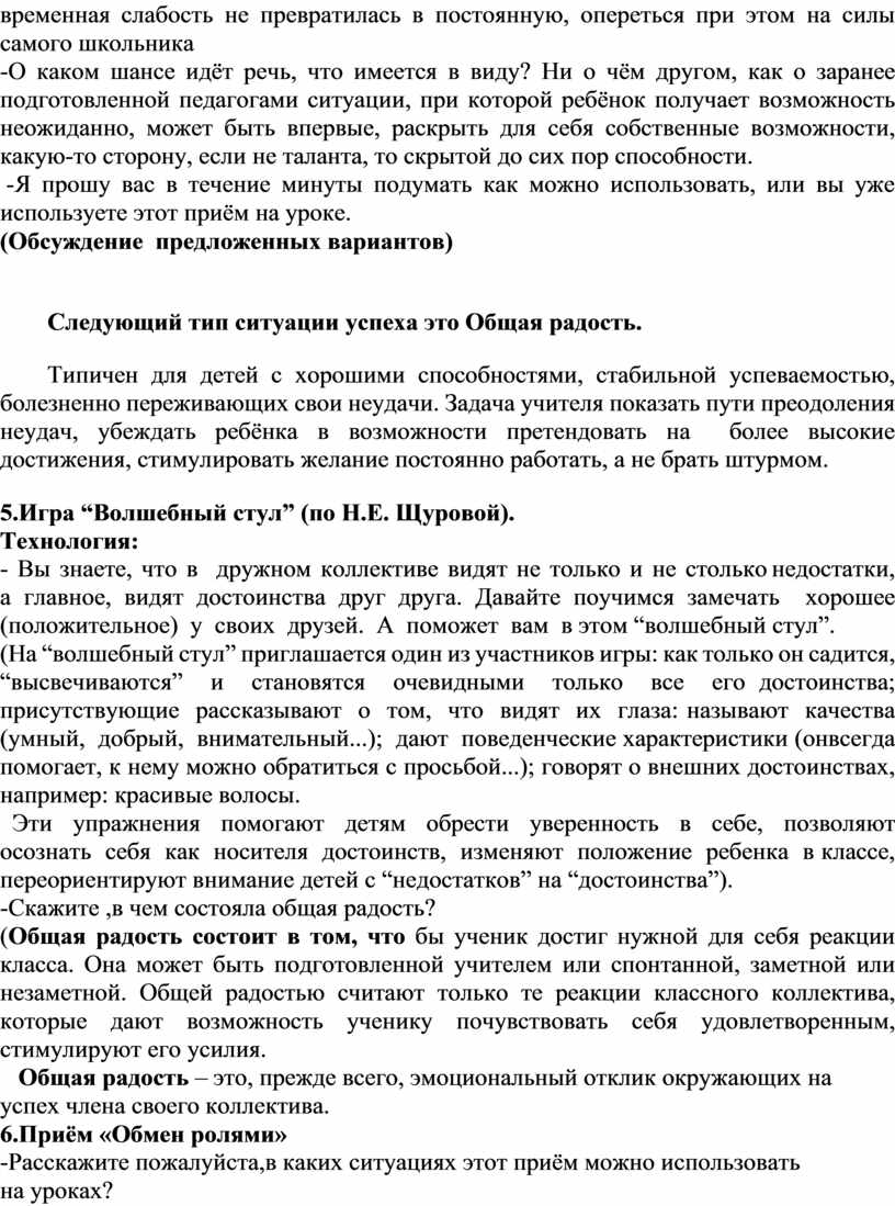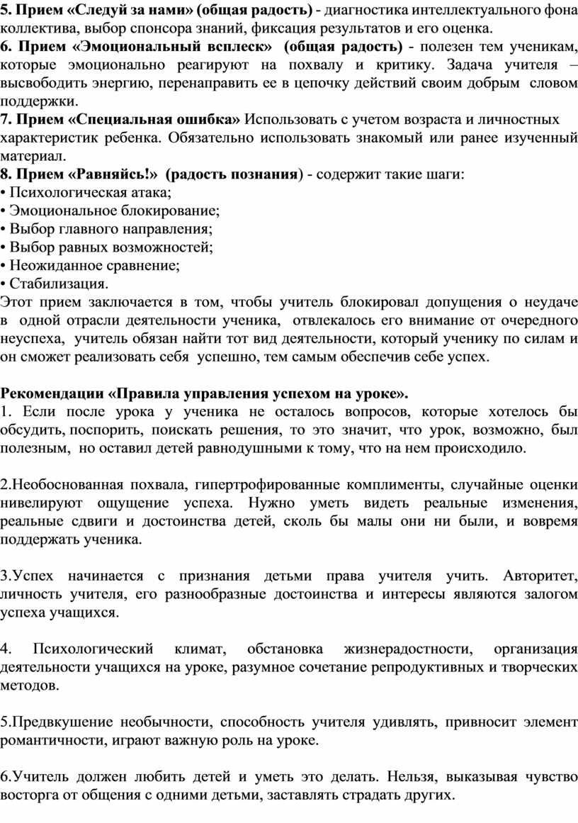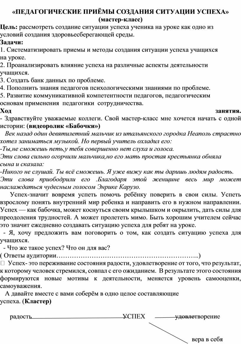 «ПЕДАГОГИЧЕСКИЕ ПРИЁМЫ СОЗДАНИЯ СИТУАЦИИ УСПЕХА»