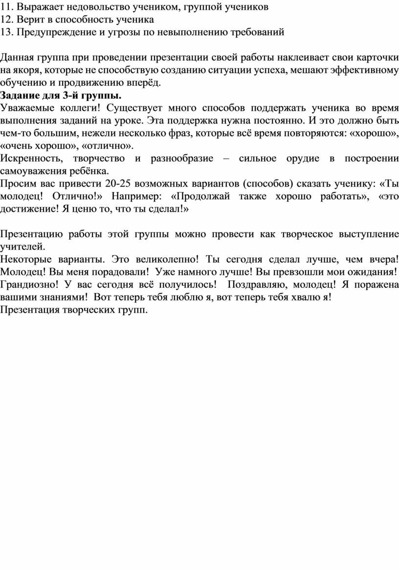 необходимости предложите свои варианты действий учителя, которые мешают созданию