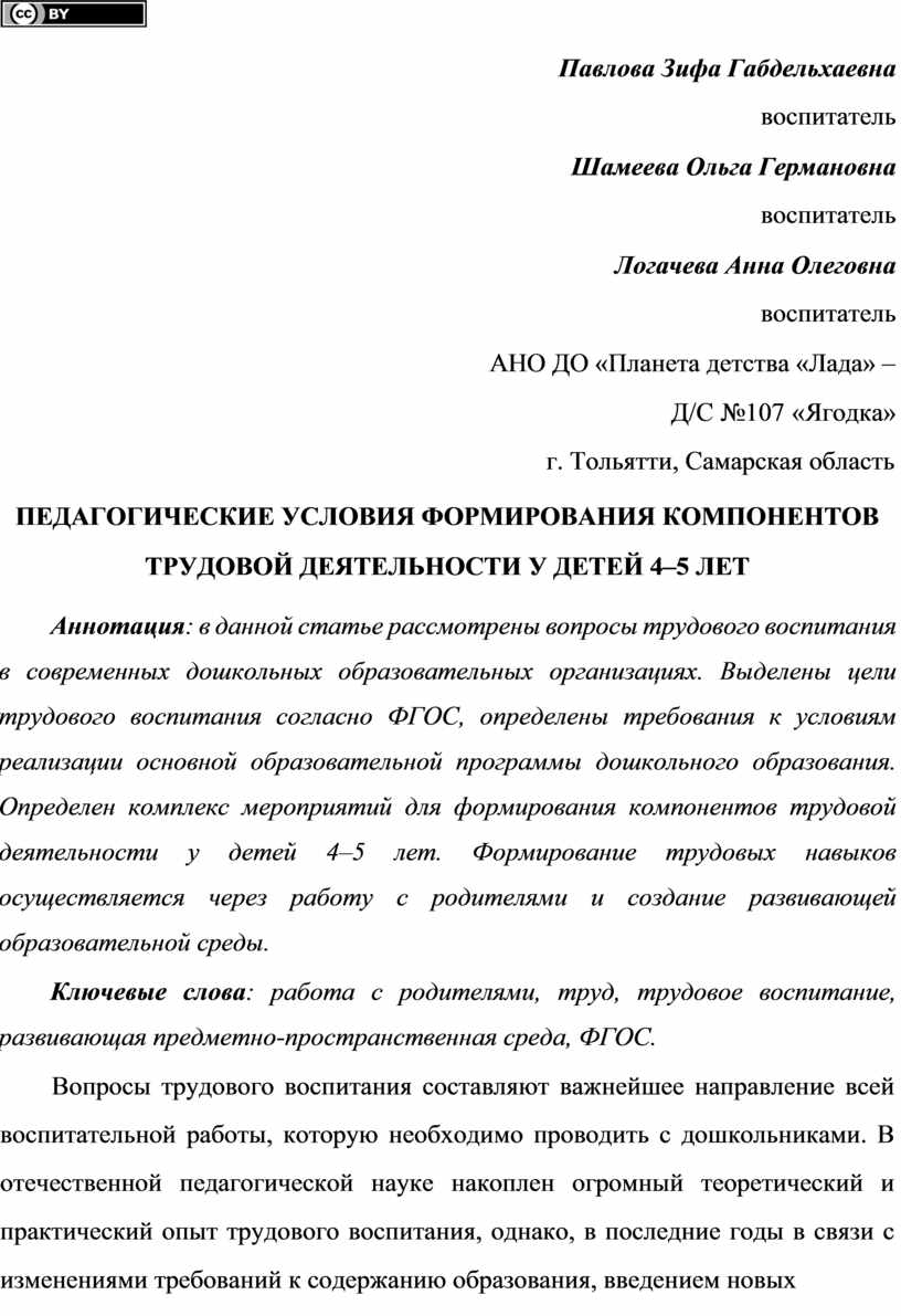 Ключевые слова: работа с родителями, труд, трудовое воспитание, развивающая предметно-пространственная среда, ФГОС.