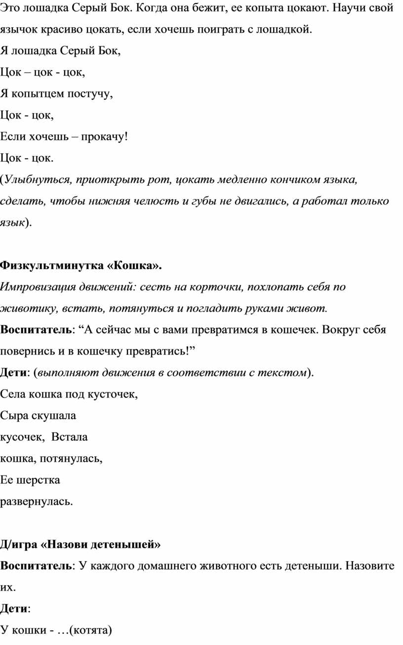 Воспитатель: “А сейчас мы с вами превратимся в кошечек. Вокруг себя повернись и в кошечку превратись!”
