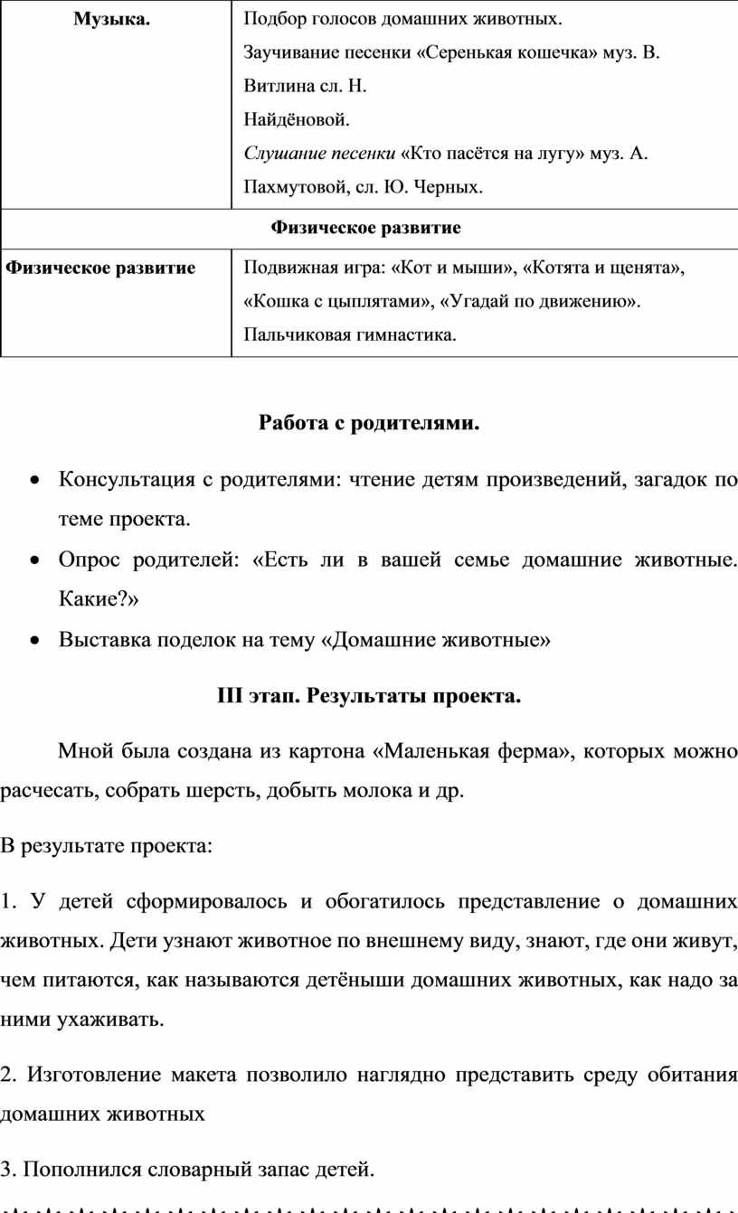 · Привлечь родителей к работе над проектом: изготовление поделки «домашние животные».
