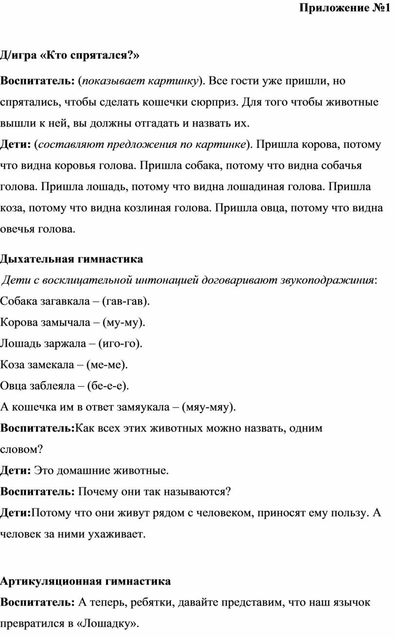 Воспитатель: (показывает картинку). Все гости уже пришли, но спрятались, чтобы сделать кошечки сюрприз. Для того чтобы животные вышли к ней, вы должны отгадать и назвать их.