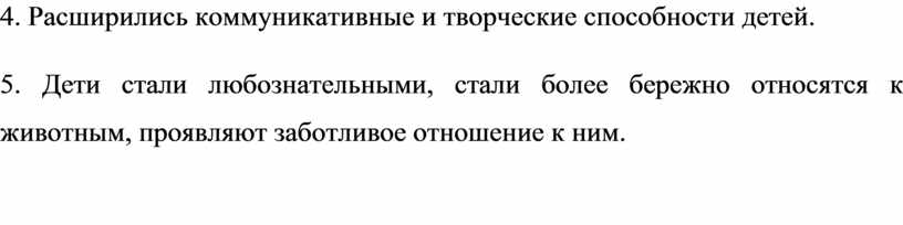 5. Дети стали любознательными, стали более бережно относятся к животным, проявляют заботливое отношение к ним.