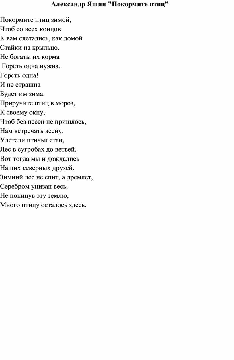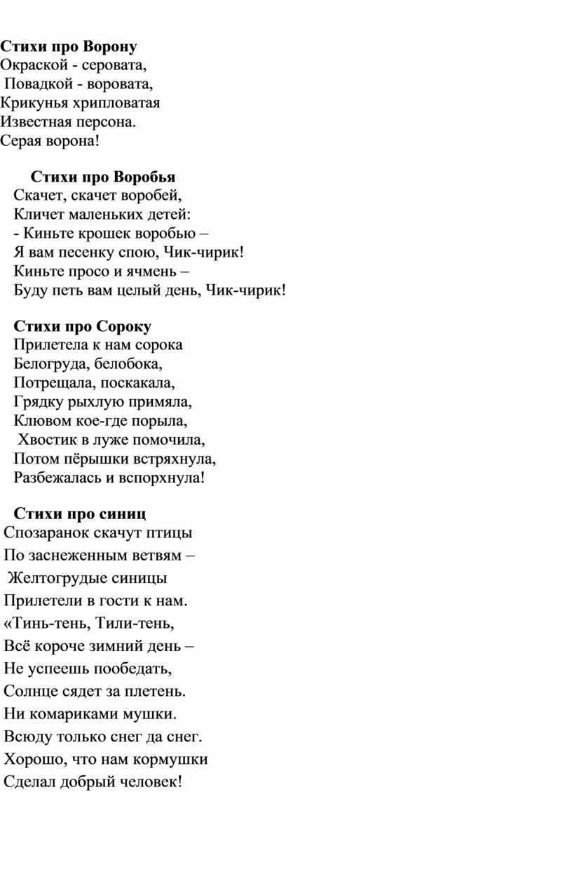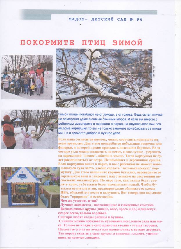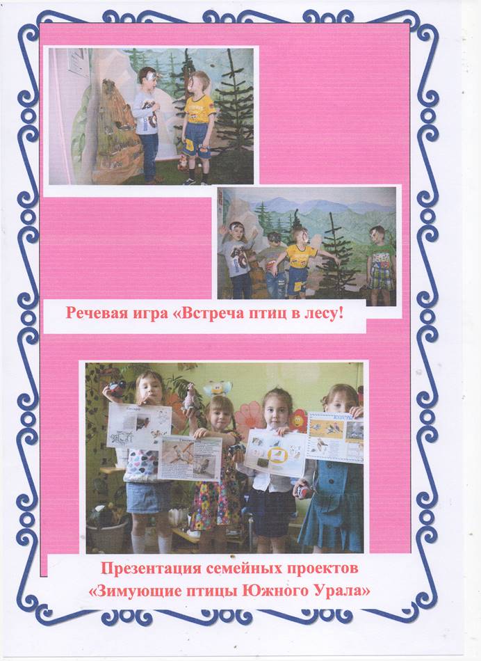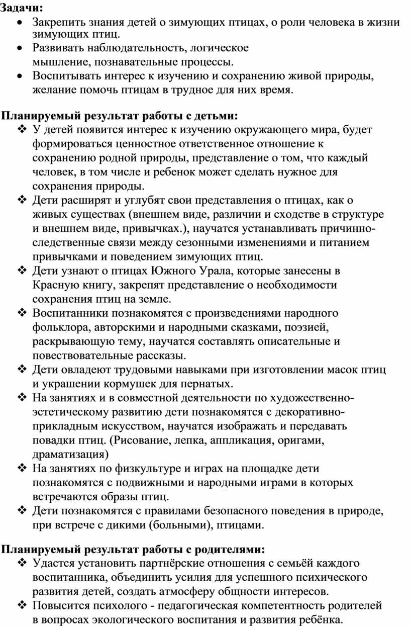 Расширение и обогащение знаний детей о зимующих птицах Южного Урала. Девиз проекта: