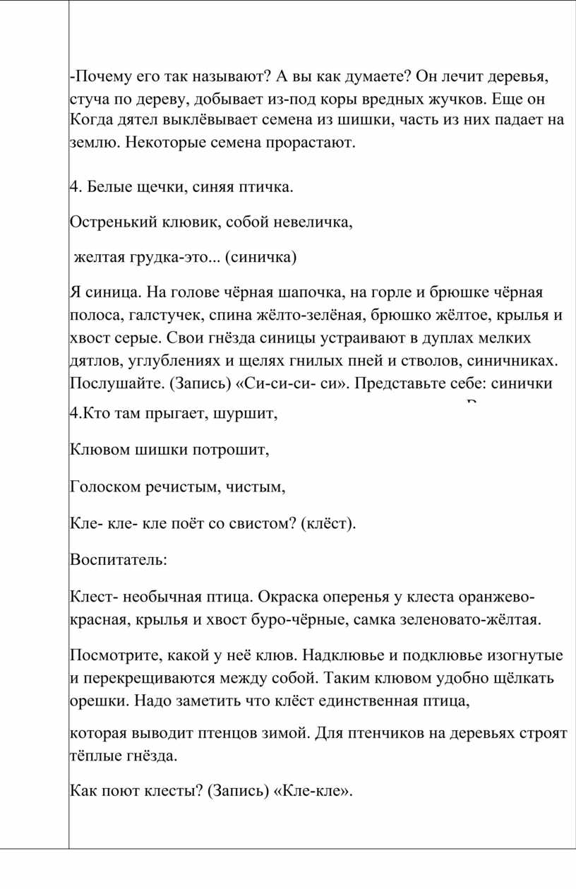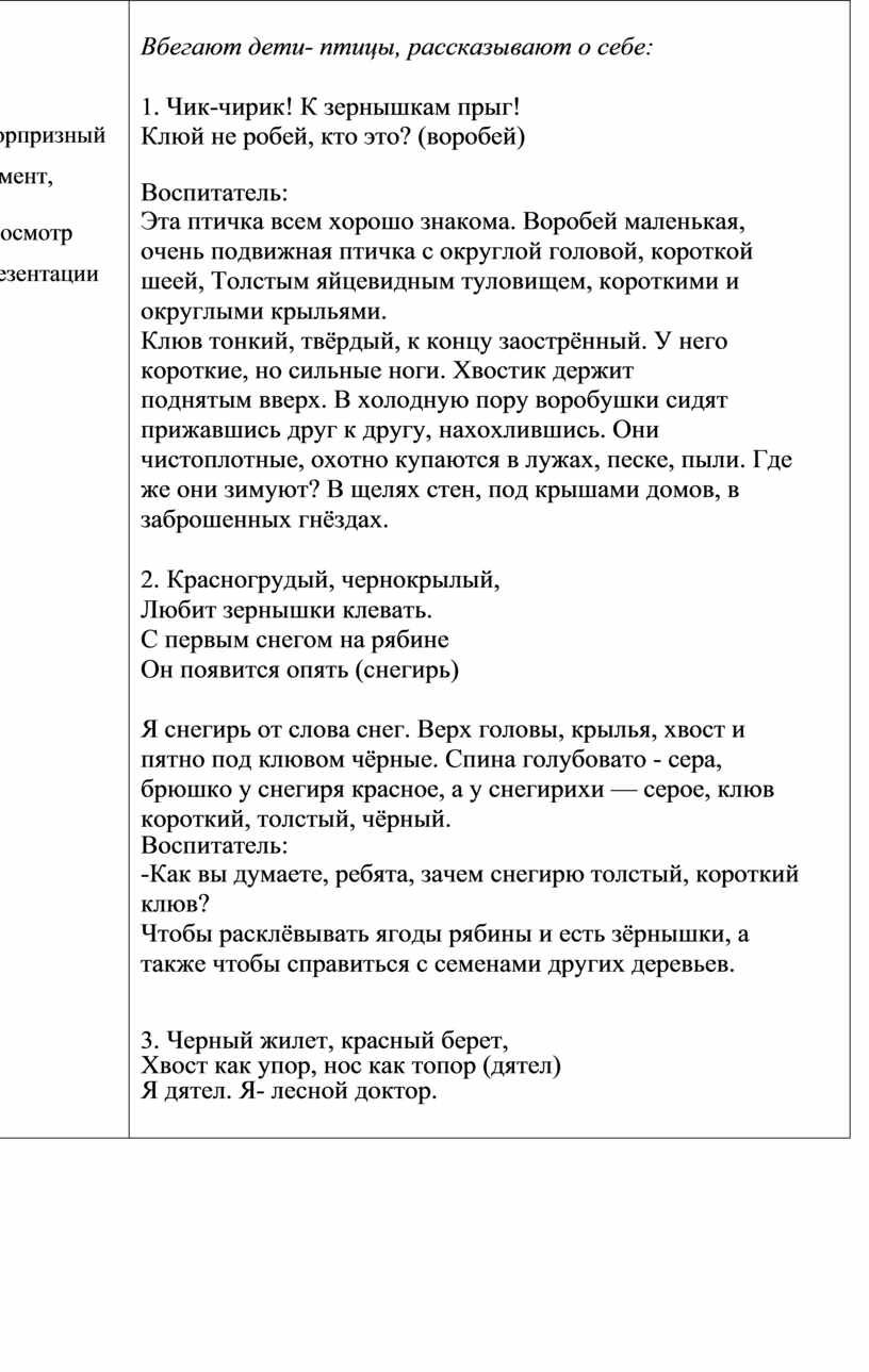 v Дети расширят и углубят свои представления о птицах, как о живых существах (внешнем виде, различии и сходстве в структуре и внешнем виде, привычках.), научатся устанавливать причинно- следственные связи между сезонными изменениями и питанием привычками и поведением зимующих птиц.