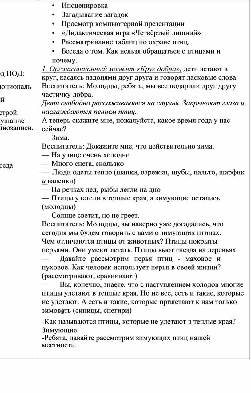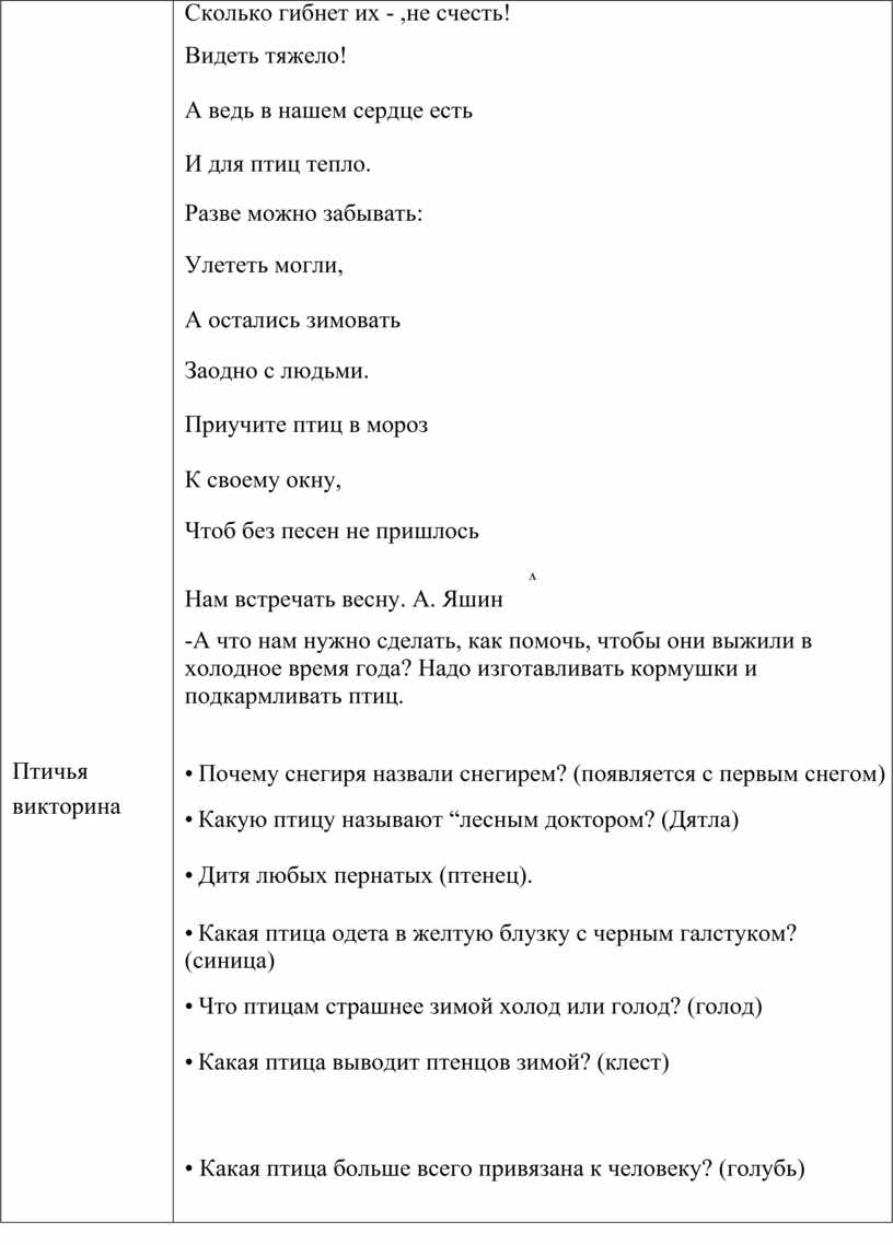 · Закрепить знания детей о зимующих птицах, о роли человека в жизни зимующих птиц.