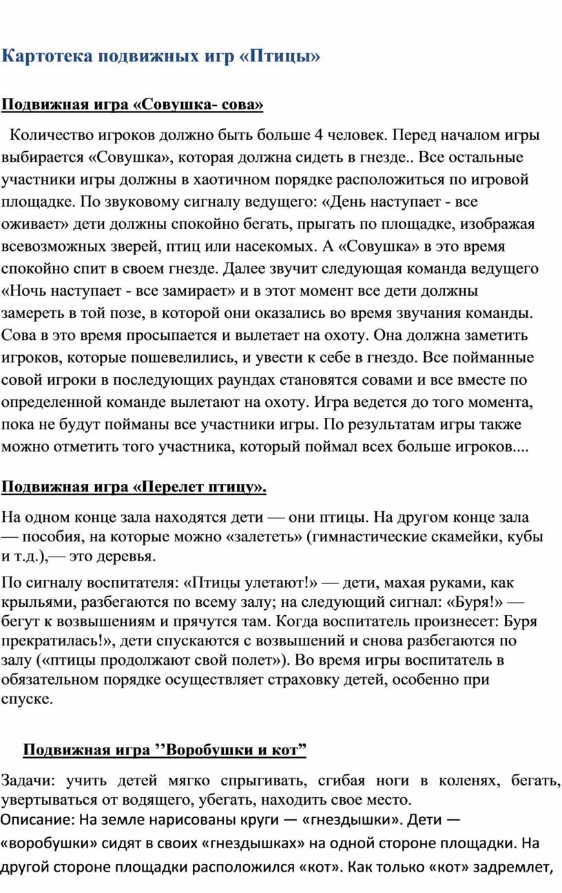 v На занятиях по физкультуре и играх на площадке дети познакомятся с подвижными и народными играми в которых встречаются образы птиц.