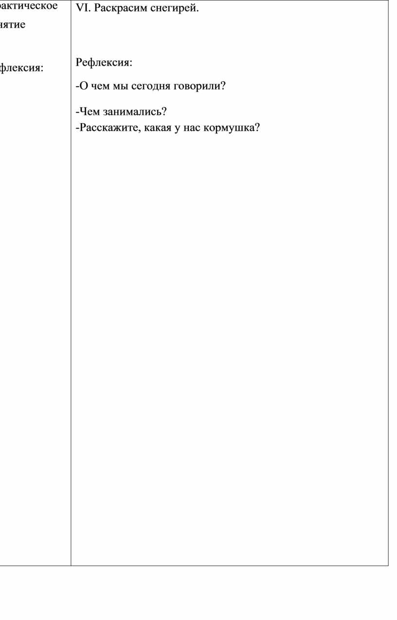 Рефлексия: -О чем мы сегодня говорили? -Чем занимались? -Расскажите, какая у нас кормушка?