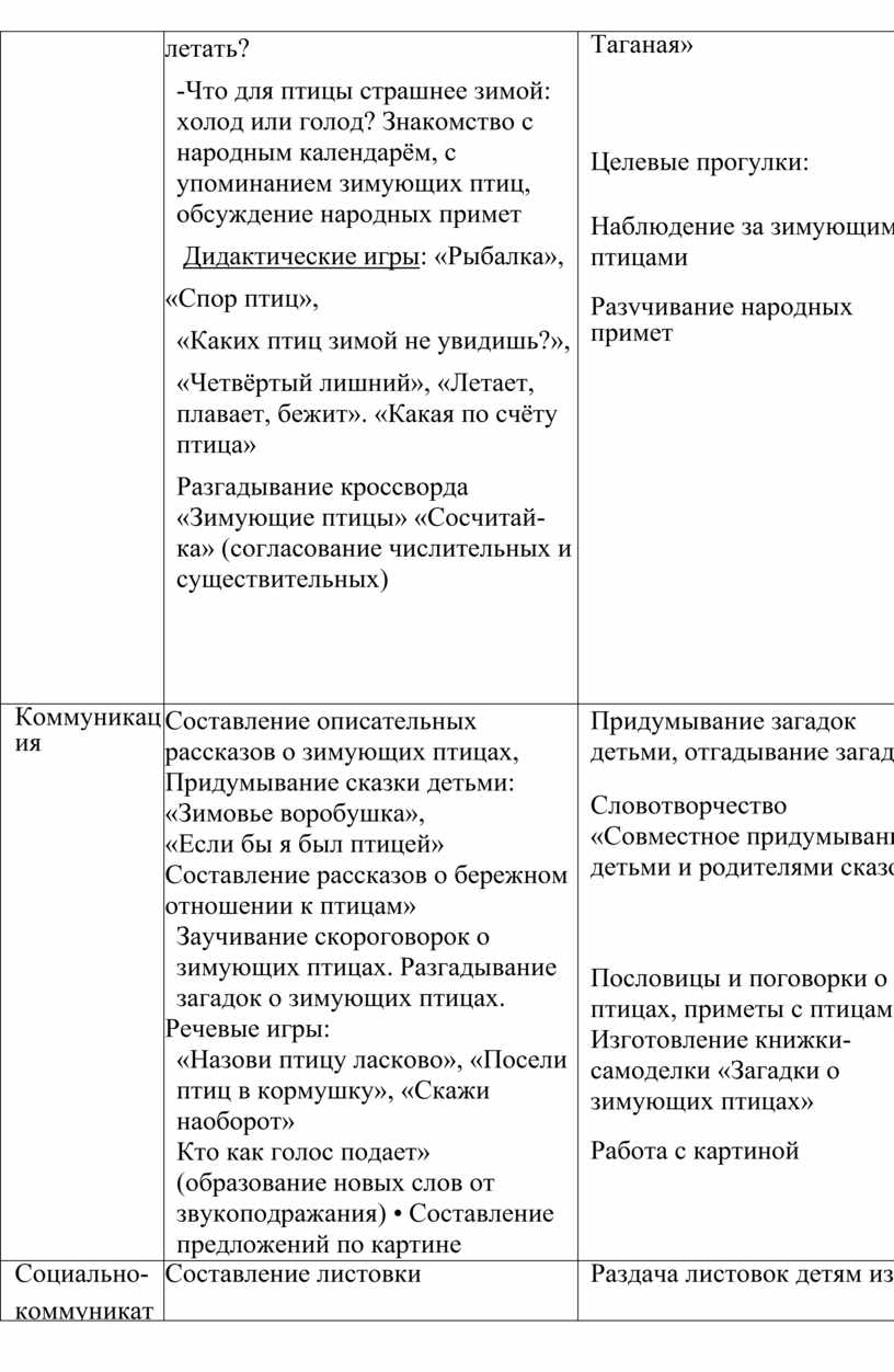 Таганая» Целевые прогулки: Наблюдение за зимующими птицами Разучивание народных примет * |