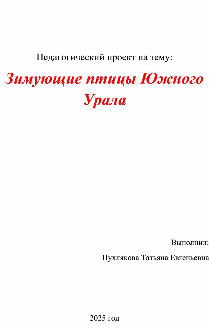 Цель данного проекта – расширение и обогащение знаний детей о зимующих птицах Южного Урала.