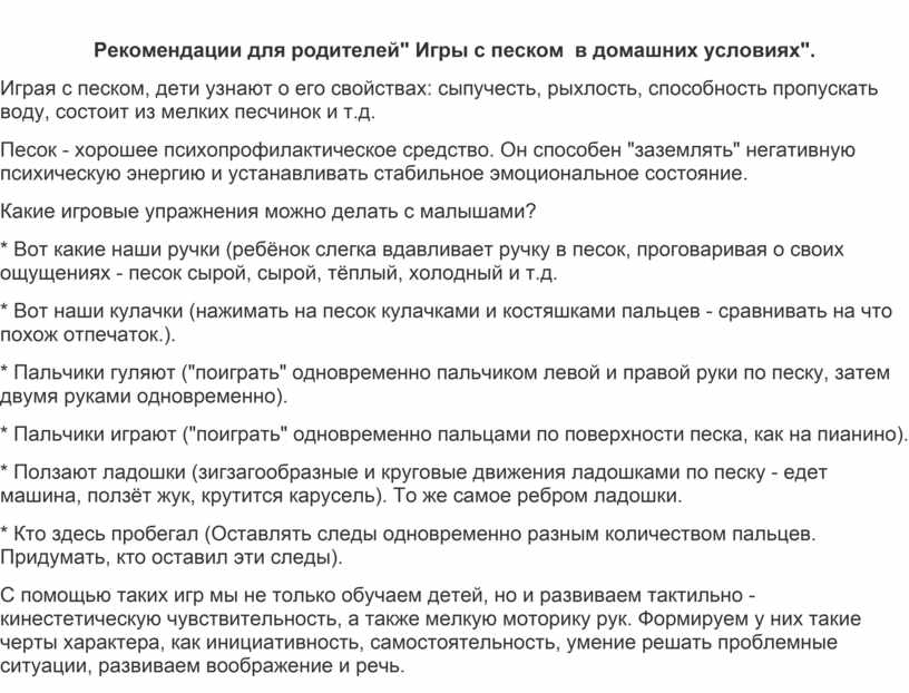 Рекомендации для родителей" Игры с песком в домашних условиях".