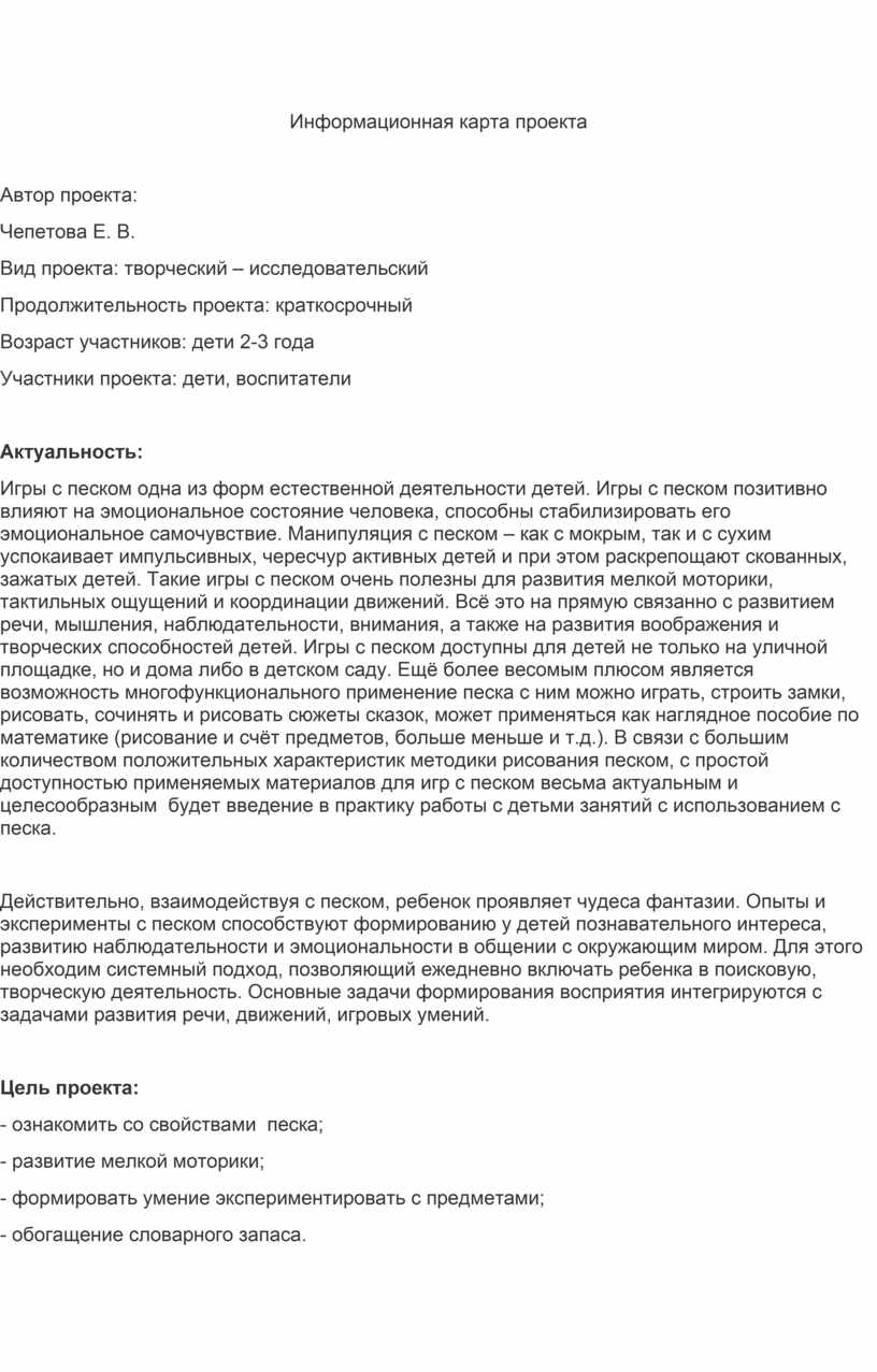 Информационная карта проекта