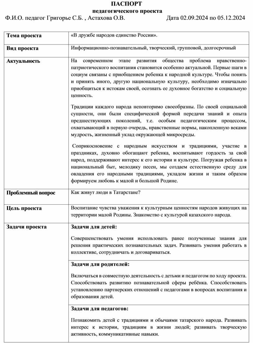 Задачи для педагогов: Познакомить детей с традициями и обычаями татарского народа. Развивать интерес к истории, традициям в жизни людей; развивать творческую активность, коммуникативные навыки. Воспитывать интерес к культуре татарского народа, уважение к его традициям.  |