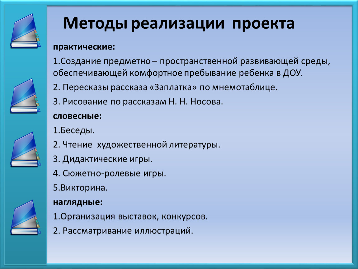 III этап | заключительный | итоговые мероприятия, (викторина по произведением Н.Носова, участие в конкурсе рисунков) подведение итогов работы по проекту |