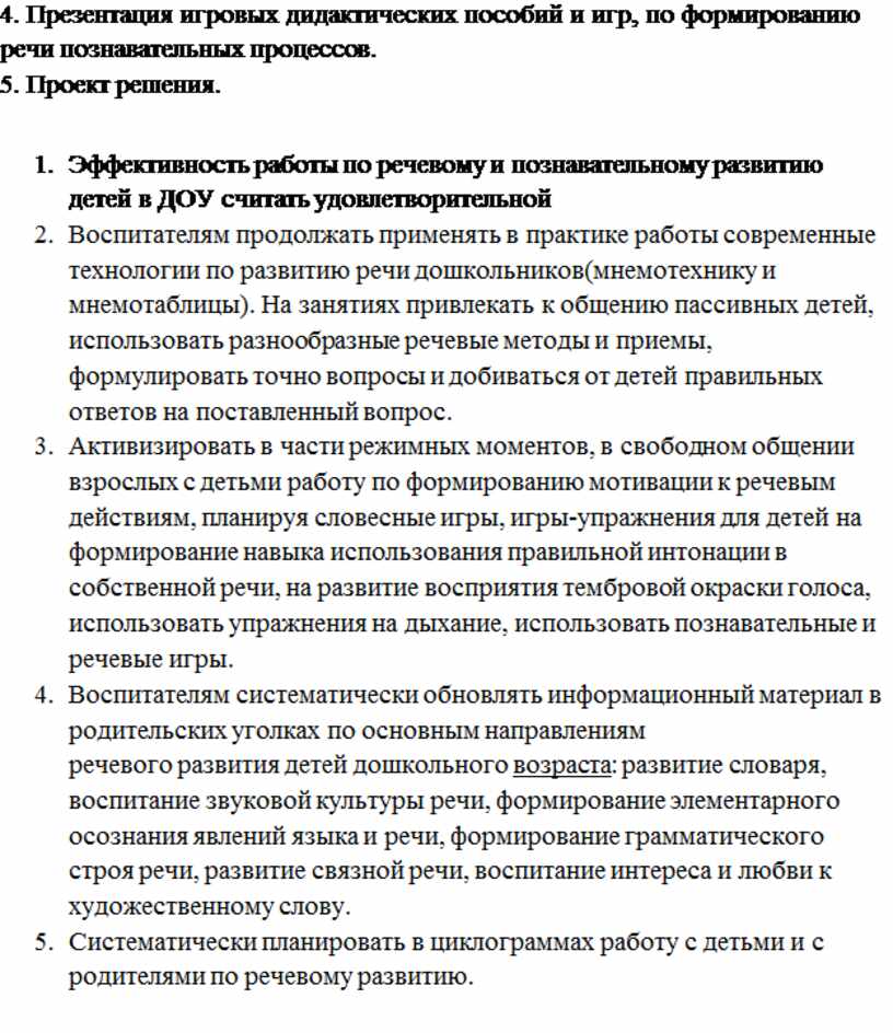 1. Эффективность работы по речевому и познавательному развитию детей в ДОУ считать удовлетворительной