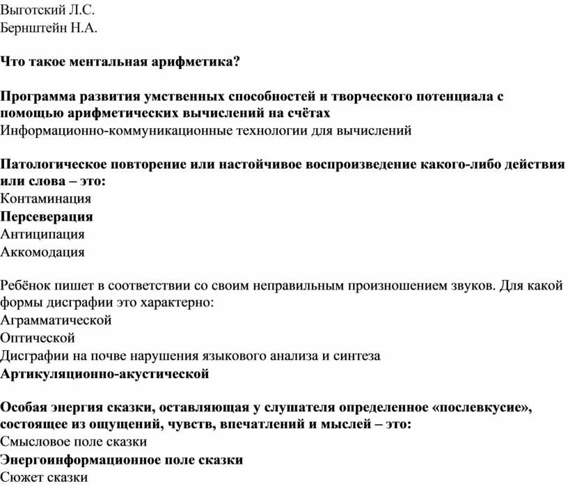 · Программа развития умственных способностей и творческого потенциала с помощью арифметических вычислений на счётах