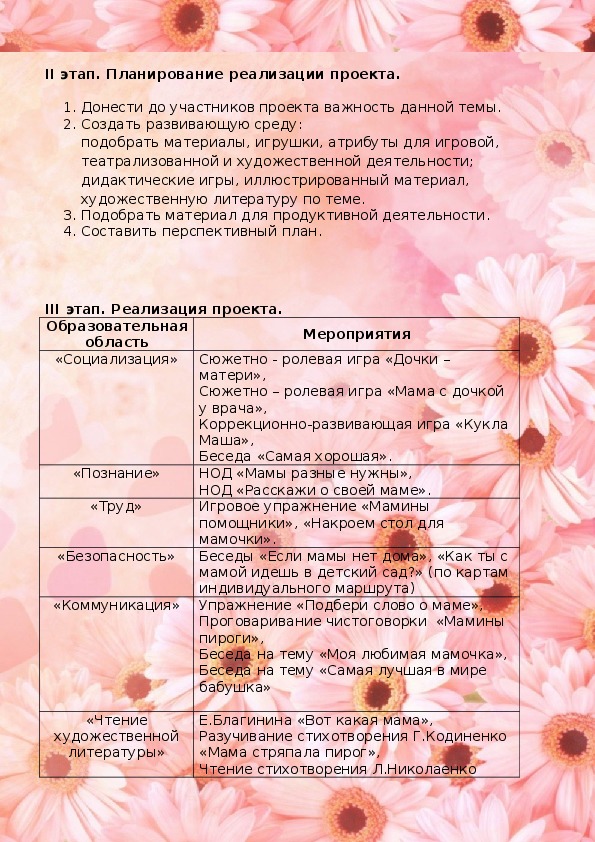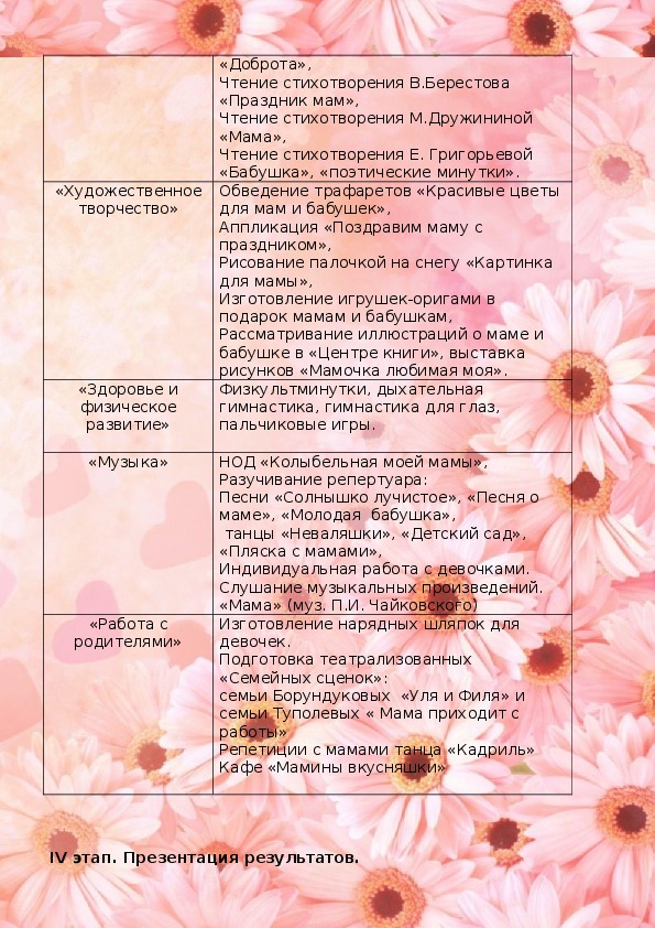 4. Воспитывать любовь к маме, бабушке; учить оказывать им