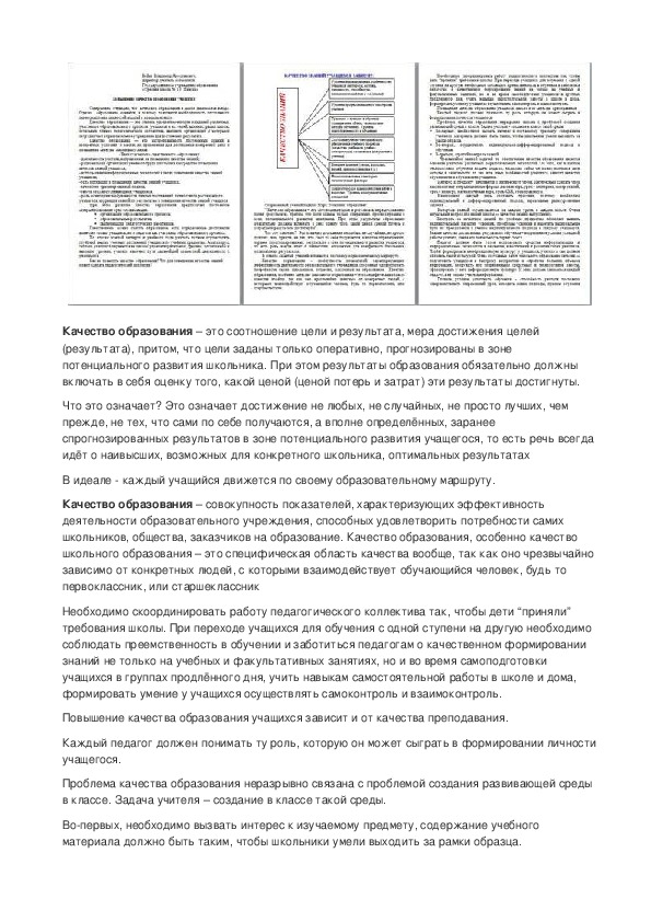 При этом развитие качества образования предполагает постоянное совершенствование трех