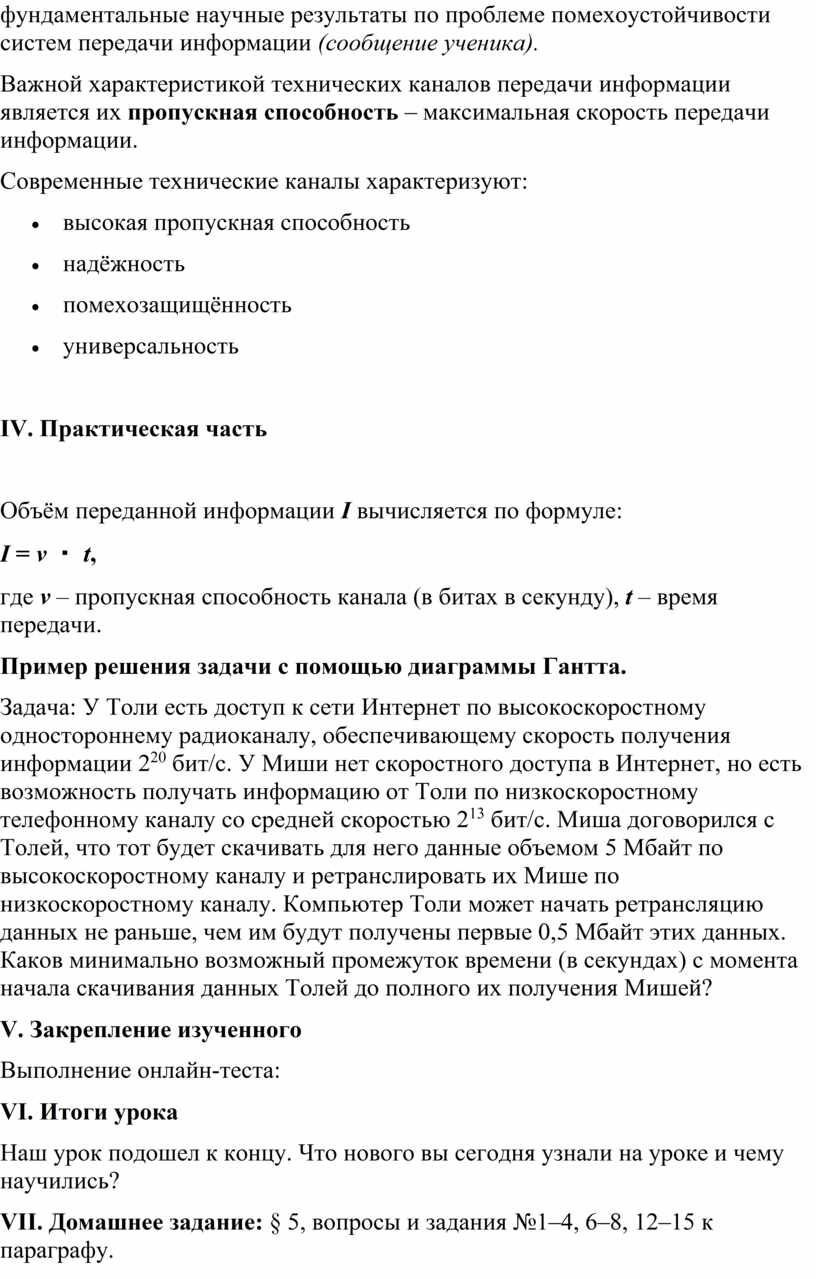 3) научить решать задачи, связанные с передачей информации по каналам связи;