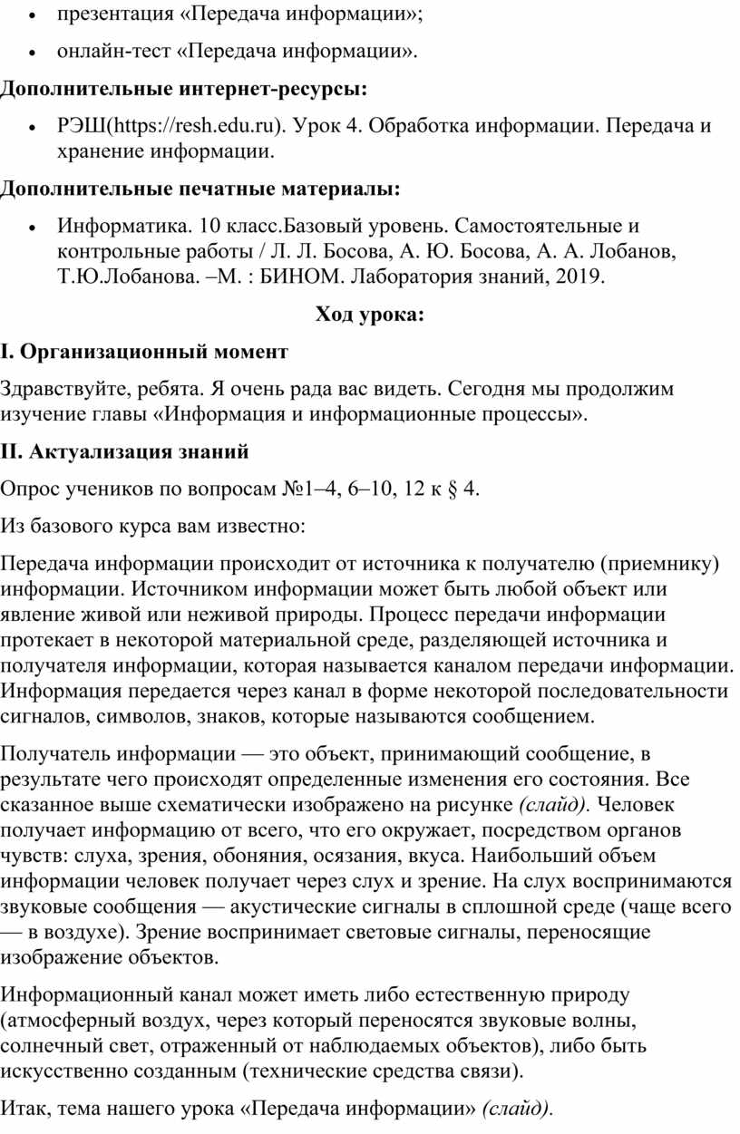 · РЭШ(https://resh.edu.ru). Урок 4. Обработка информации. Передача и хранение информации.