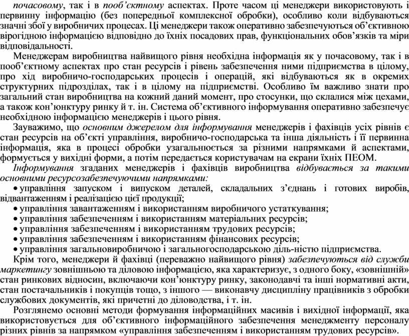 Інформування згаданих менеджерів і фахівців виробництва відбувається за такими основними ресурсозабезпечуючими напрямками:
