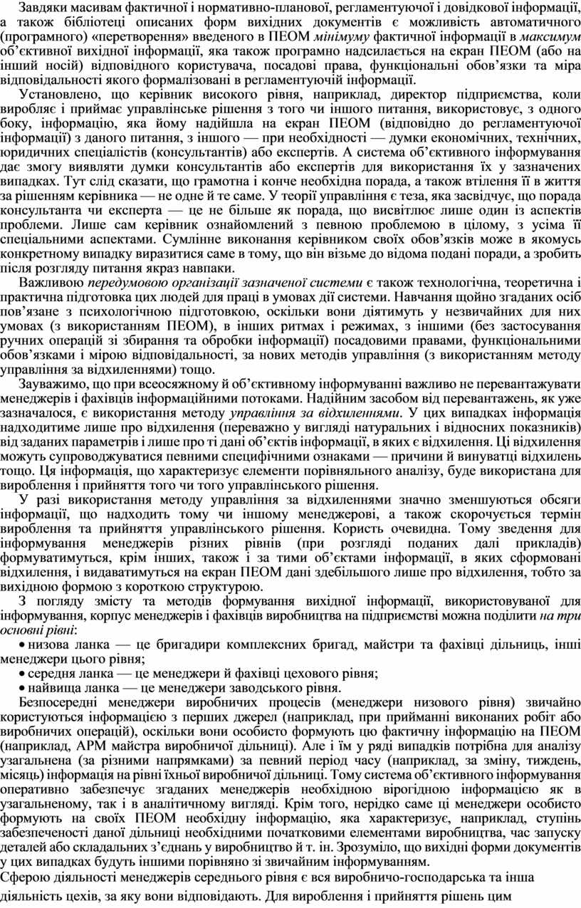 Зауважимо, що основним джерелом для інформування менеджерів і фахівців усіх рівнів є стан ресурсів на об’єкті управління, виробничо-господарська та інша діяльність і її первинна інформація, яка в процесі обробки узагальнюється за різними напрямками й аспектами, формується у вихідні форми, а потім передається користувачам на екрани їхніх ПЕОМ.