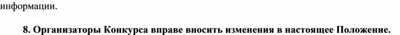 8. Организаторы Конкурса вправе вносить изменения в настоящее Положение.