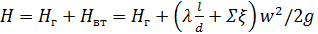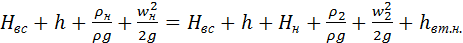 Зазвичай, нагнітальний і всмоктувальний патрубки насоса мають однаковий діаметр; відповідно wн = wвс і рівняння (2.75) спрощується: