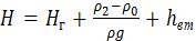 Рівняння (2.75) показує, що напір насоса дорівнює сумі трьох доданків: висоти підйому рідини в насосі, різниці п'єзометричних напорів і різниці динамічних напорів в нагнітальному і всмоктувальному патрубках насоса.