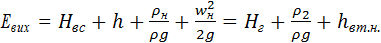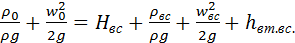 У цих рівняннях: w0 і w2 — швидкості рідини у витратній та напірній ємностях (у перерізах 0 - 0 і 2 - 2 відповідно); wвс і wн - швидкості рідини у всмокту-вальному і нагнітальному патрубках насоса; hвт.вс. і hвт.н. - втрати напору у всмоктуючому і нагнітальному трубопроводах.