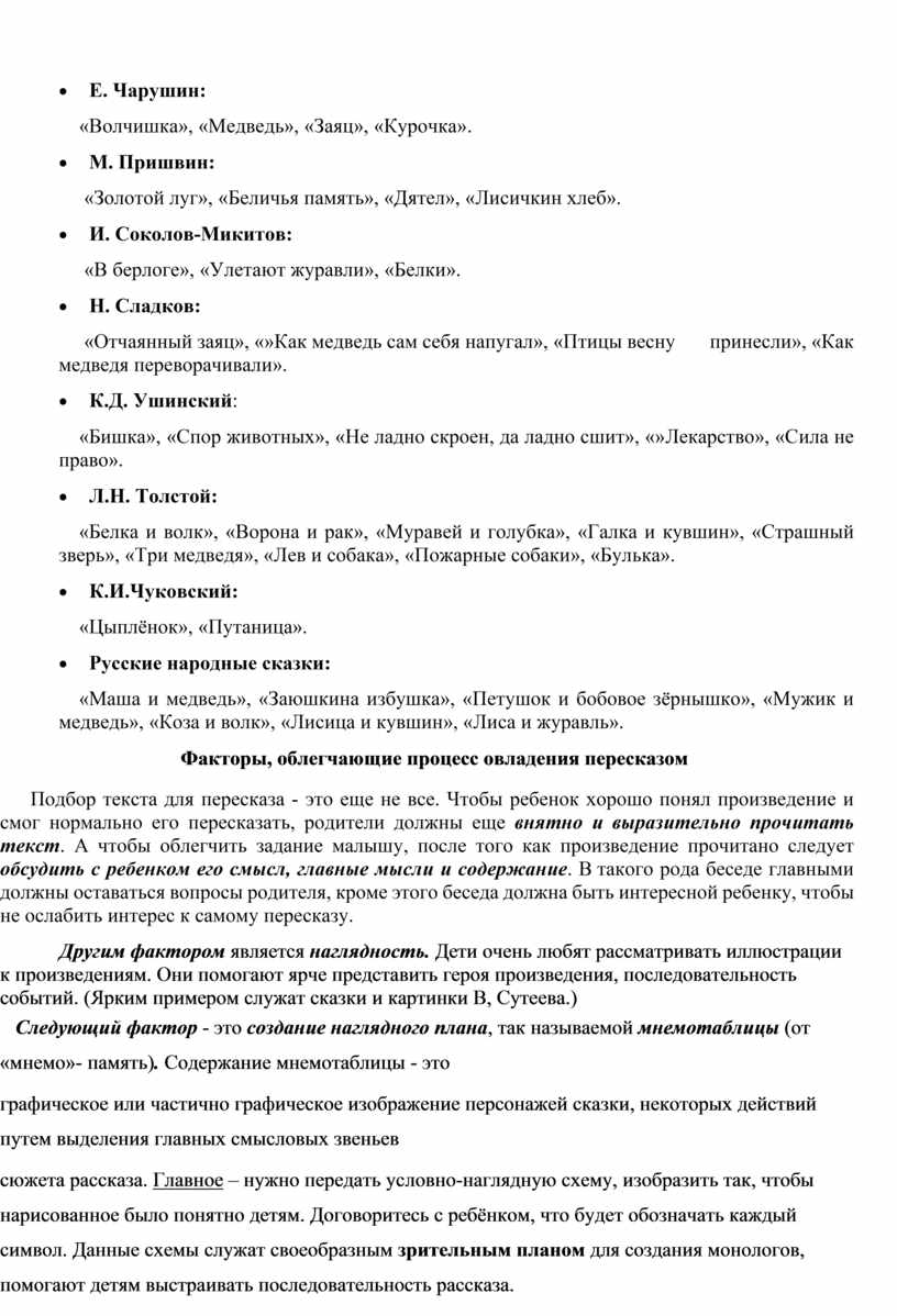 Факторы, облегчающие процесс овладения пересказом