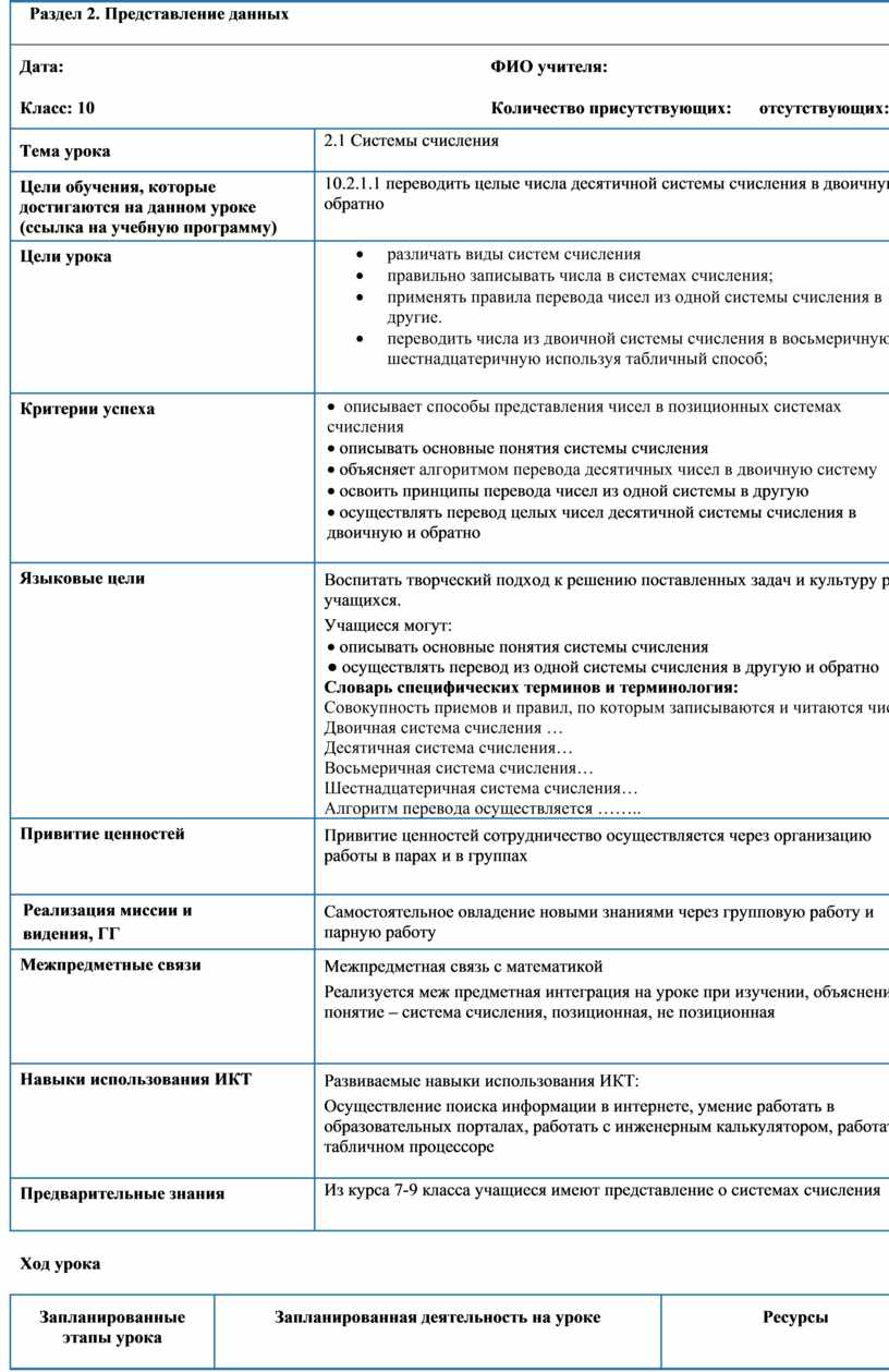 10.2.1.1 переводить целые числа десятичной системы счисления в двоичную и обратно |