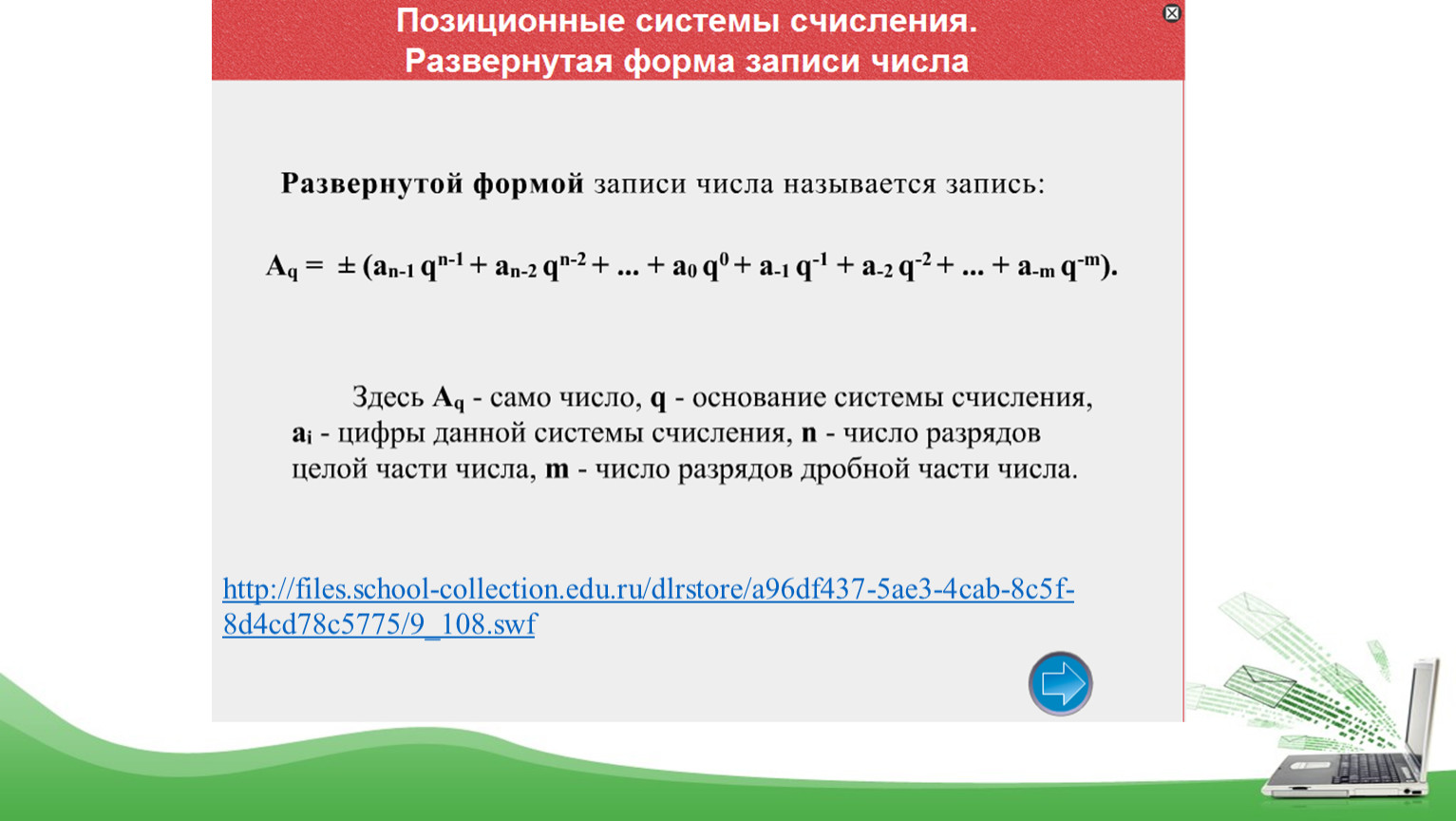 Двоичная система счисления –это позиционная система счисления с основанием два.