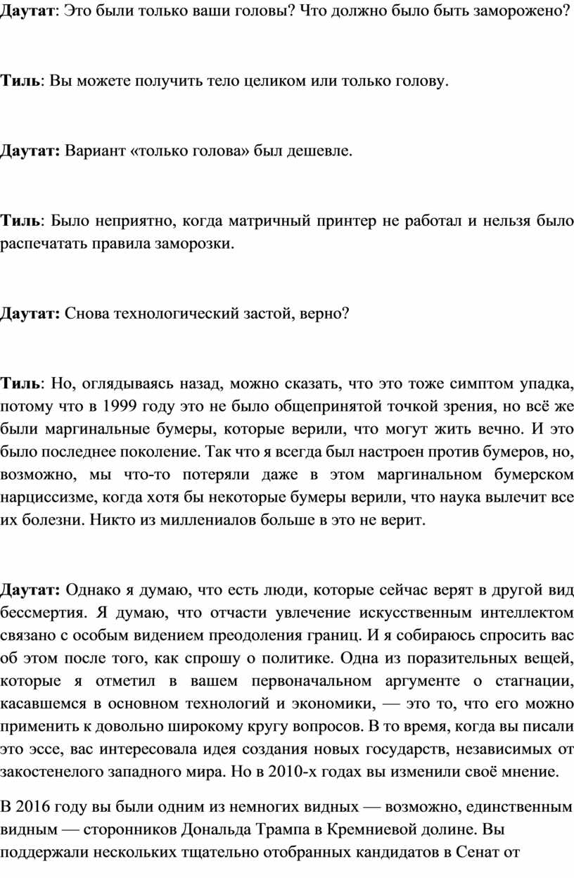 Тиль: Так что загрузка в хранилище казалась шагом назад по сравнению с крионикой. Но даже это стало предметом обсуждения, и здесь становится очень сложно что-то сказать. И я не хочу утверждать, что они всё выдумывают и это всё фальшивка, но я не...