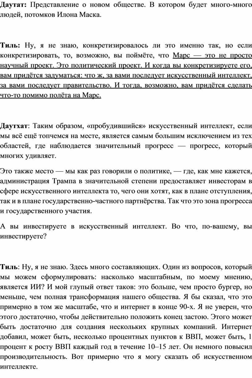 Даутат: Хорошо. Питер Тиль, спасибо, что присоединились ко мне.