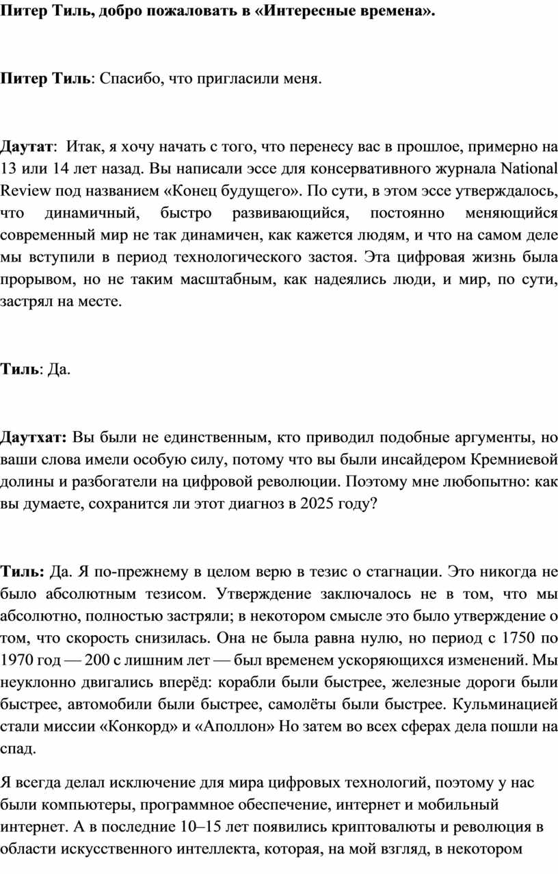 Питер Тиль, добро пожаловать в «Интересные времена».