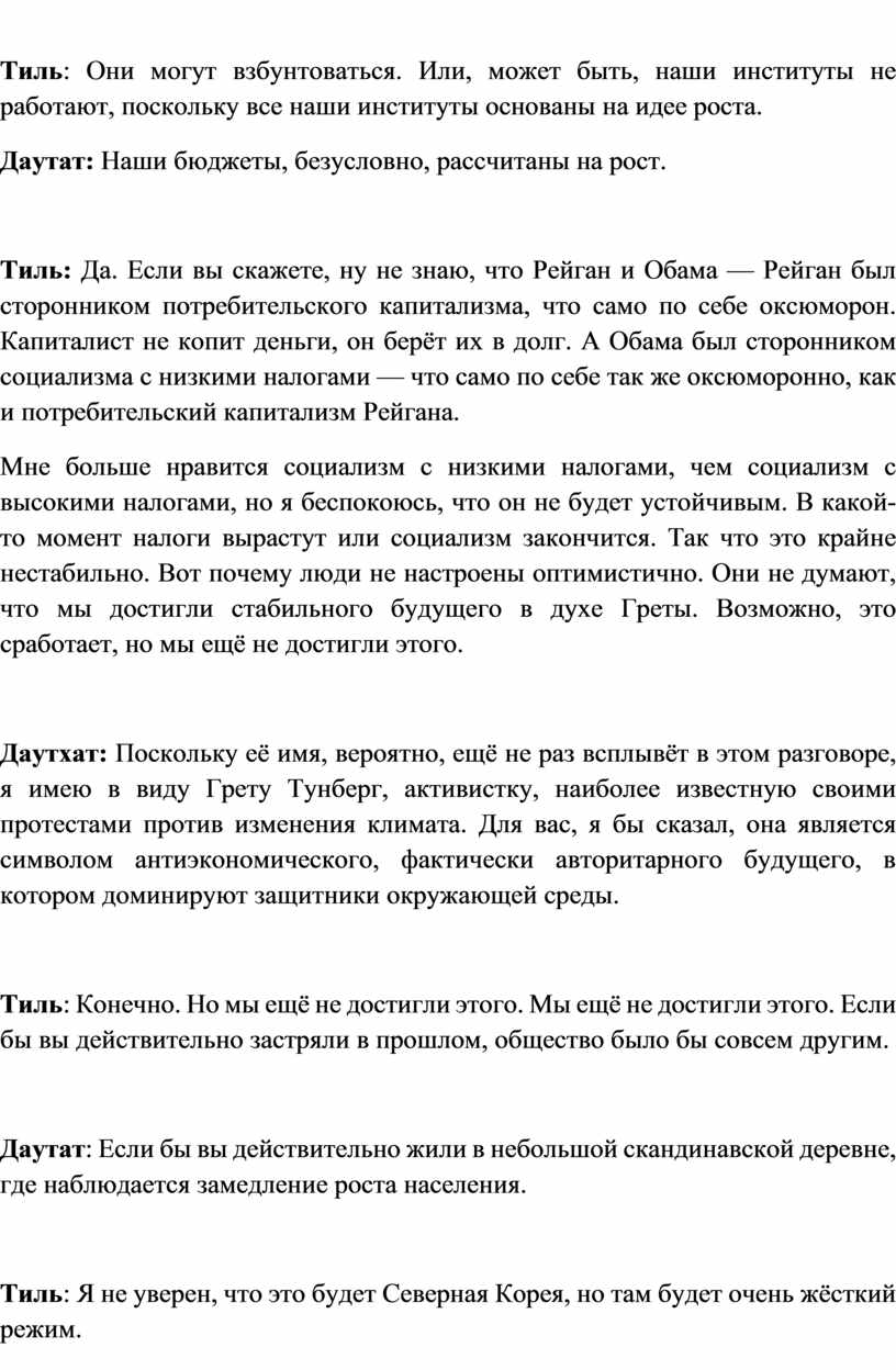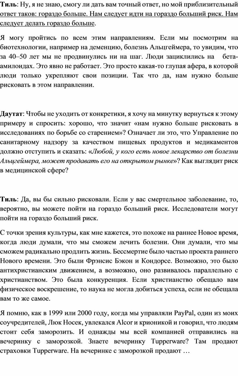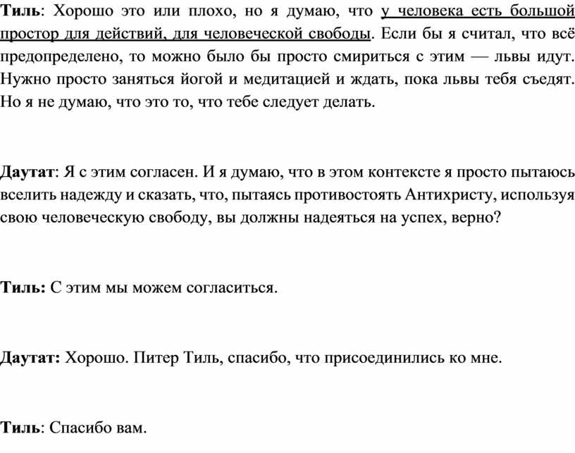 Тиль: [пауза] Чувак, это снова... Я думаю, что всегда есть место для человеческой свободы и выбора. Эти вещи не предопределены абсолютно точно.