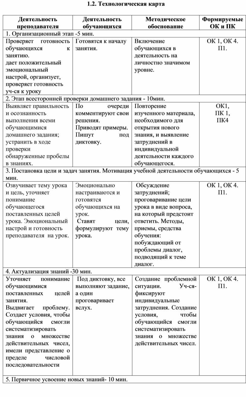 1.2. Технологическая карта