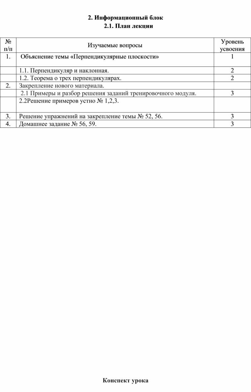 Конспект урока