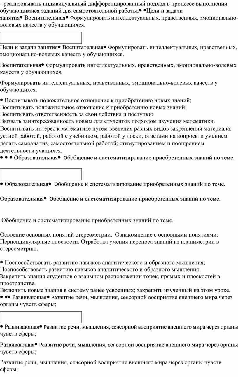 Цели и задачи занятия |