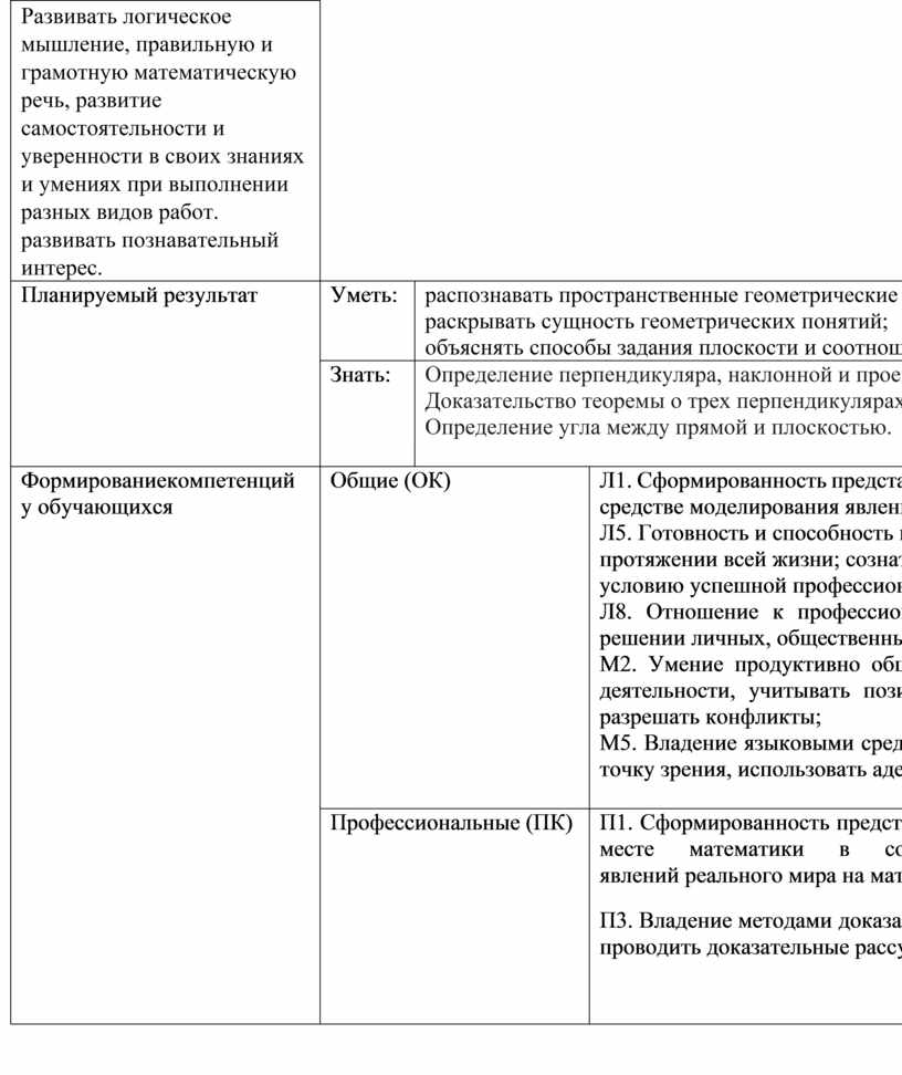 · Определение перпендикуляра, наклонной и проекции наклонной на плоскость; · Доказательство теоремы о трех перпендикулярах; · Определение угла между прямой и плоскостью.