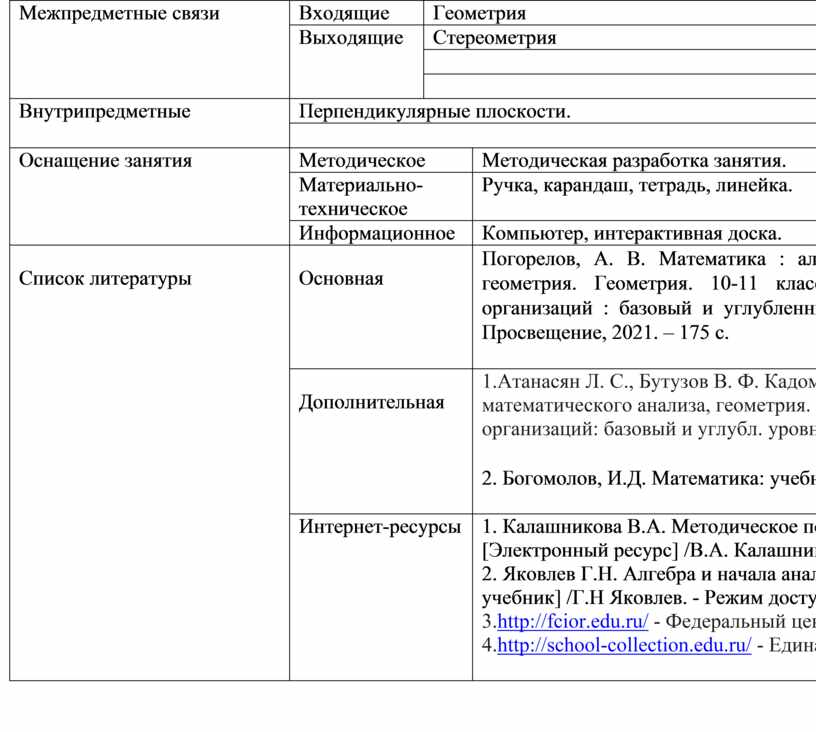 Методическая разработка занятия на тему «Перпендикулярные плоскости» на основе Рабочей программы по математике и календарно-тематического плана. Темы занятия взаимосвязаны содержанием, основными положениями.