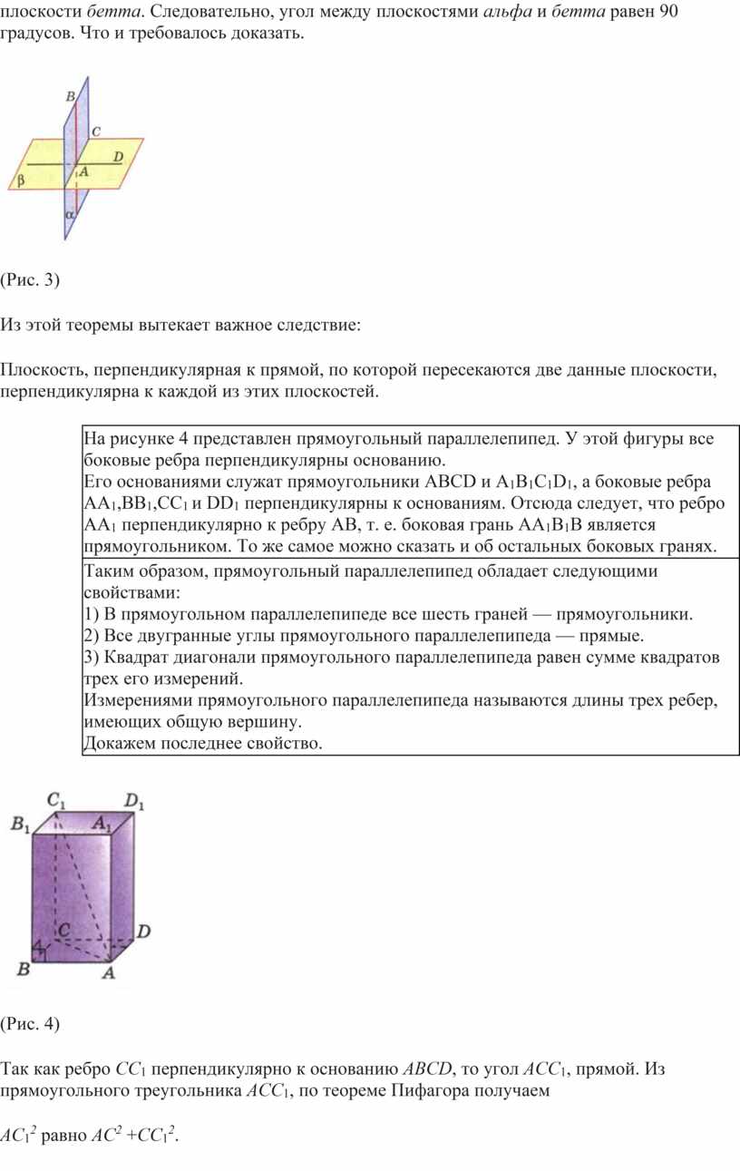 · Доказательство признака перпендикулярности двух плоскостей;