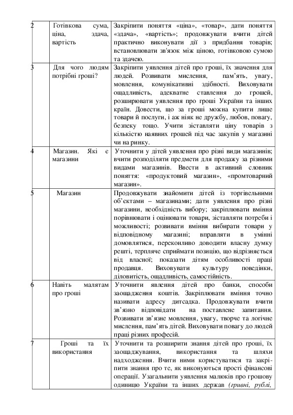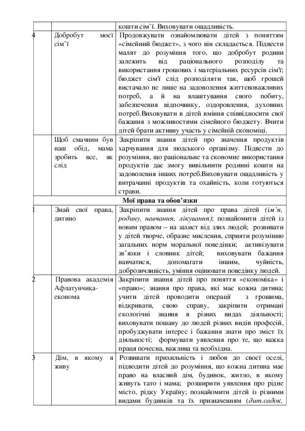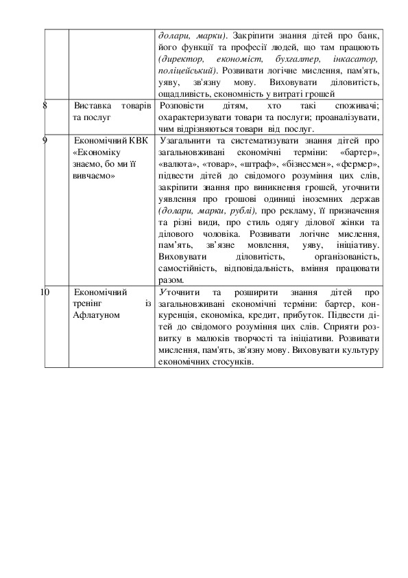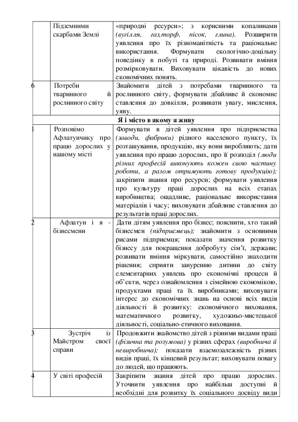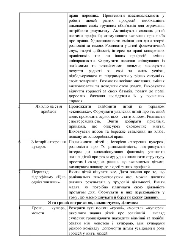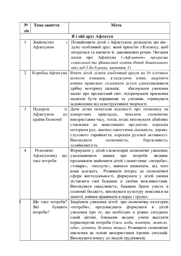 На допомогу педагогам дошкільного навчального закладу пропонується перспективний план роботи з дітьми щодо виховання соціально-ффінансової грамотності старших дошкільників відповідно до вимог програми " соціально-фінансової грамотності «Афлатот», освітньої програми для дітей від 2 до 7 років «Дитина», комплексної освітньої програми «Світ дитинства»На допомогу педагогам дошкільного навчального закладу пропонується перспективний план роботи з дітьми щодо виховання соціально-ффінансової грамотності старших дошкільників.