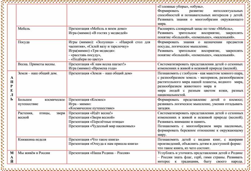 Продолжать знакомить детей с историей, культурой и бытом русского народа. Формировать эмоциональную отзывчивость на восприятие семейных традиций, традиций русского народа. Закреплять обобщающие понятия «одежда», |