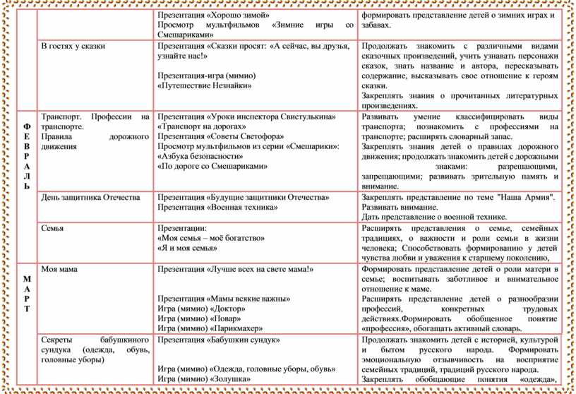 формировать представление детей о зимних играх и забавах. |
