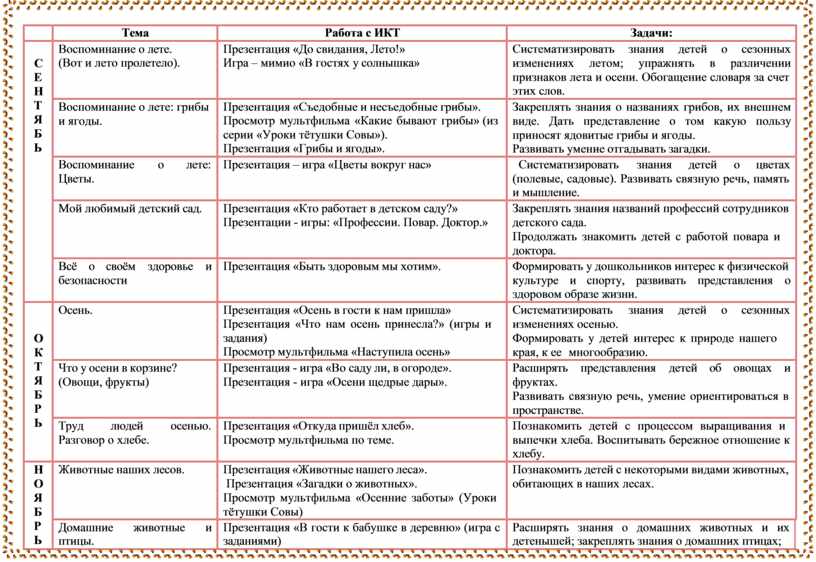 Систематизировать знания детей о сезонных изменениях осенью. Развивать связную речь |
