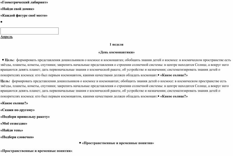 Апрель 1 неделя «День космонавтики»